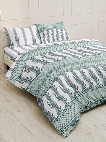 Постельное белье отшивается из премиальной, экологически чистой и высококачественной ткани перкаль.