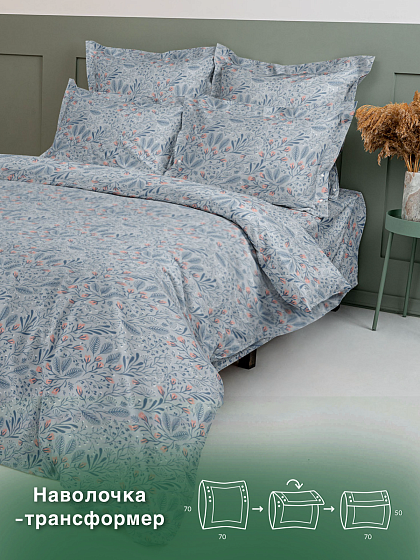 Коллекция постельного белья "Экодом" перкаль продумана до мелочей! В каждом комплекте вас ждет набор наволочек-трансформеров. Благодаря наличию специальных кнопок изделие меняет размер с 70х70см на 50х70см. Постельное белье отшивается из премиальной, экологически чистой и высококачественной ткани перкаль. Длинные хлопковые волокна позволяют добиться максимальной тонкости нитей, которые плотно переплетены между собой. Ткань получается мягкой и прочной. Принты и оттенки коллекции словно уводят от суеты в тихую красоту природы, успокаивают неброской изысканностью тонких линий.